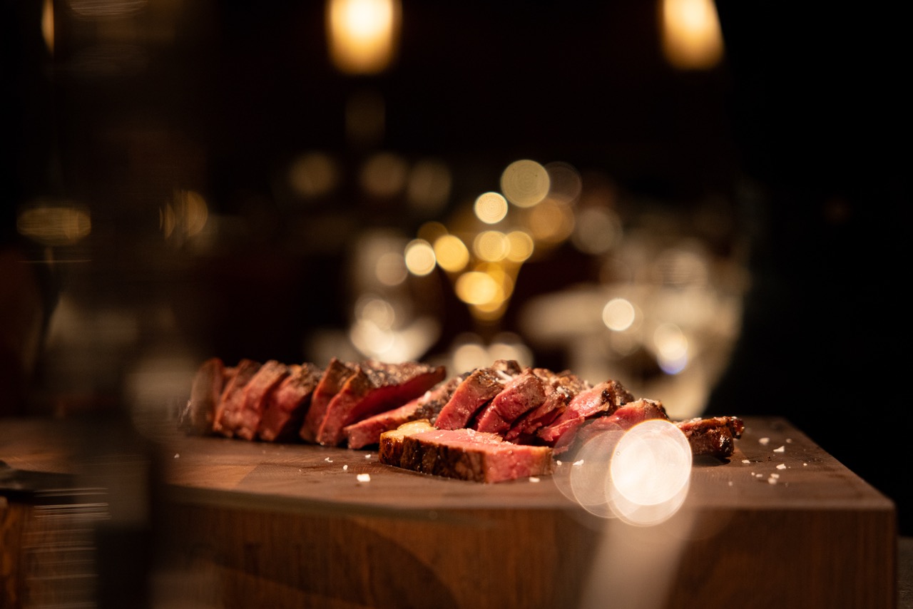 Kärnan i vår meny är köttet – från klassiska styckningsdetaljer till mer ovanliga snitt, alltid tillagat över öppen glöd och med största respekt för råvaran. I recensionen särskilt hyllas vår svenska entrecôte hängmörad i 35 dagar, recensenten beskriver det som ”Smaken går inte att beskriva som något annat än en religiös upplevelse – efter första tuggan svartnar det nästan för ögonen.”.